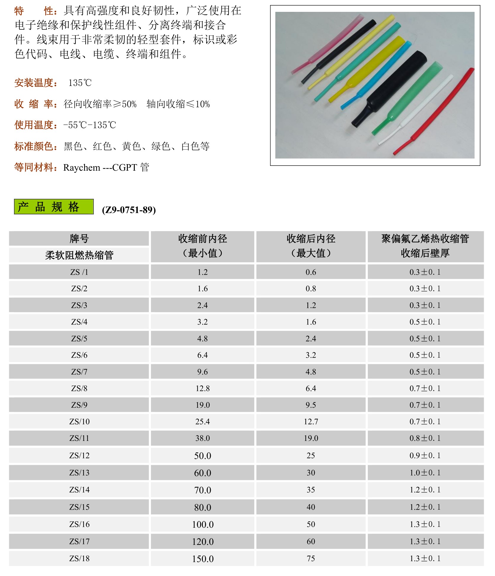 ZS柔软阻燃热缩管